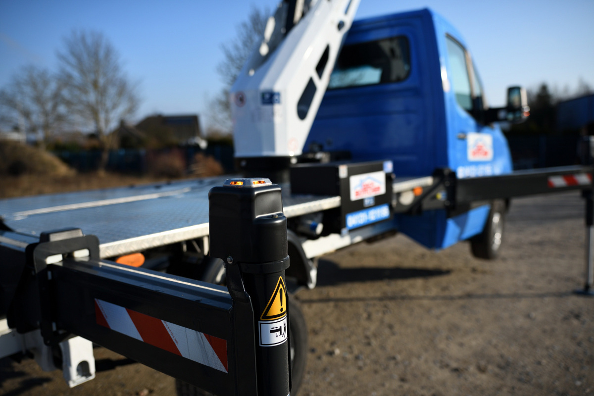 Seitliche Reichweite der LKW Arbeitsbühne bei der Bestellung berücksichtigen.